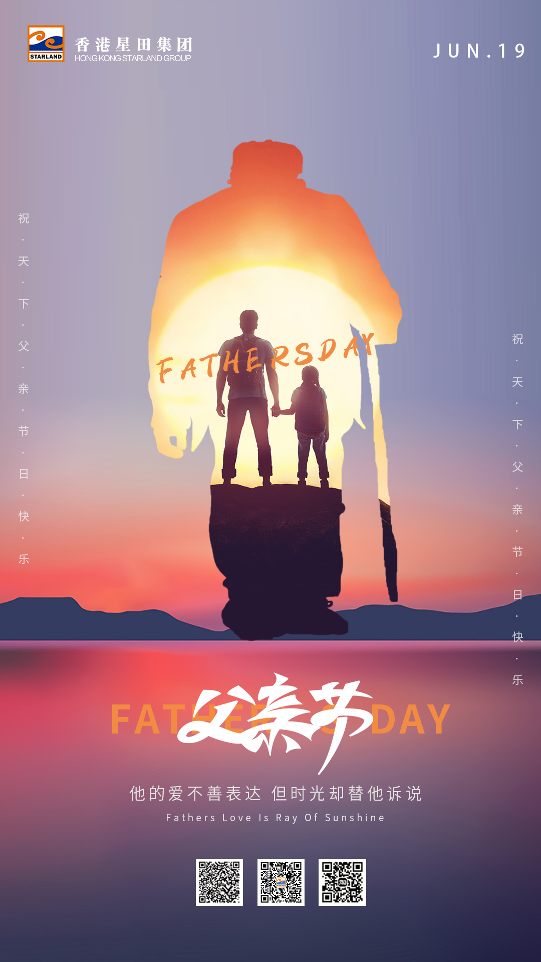父亲节(Father's Day),顾名思义是感恩父亲的节日。约始于二十世纪初,起源于美国,现已广泛流传于世界各地,节日日期因地域而存在差异。