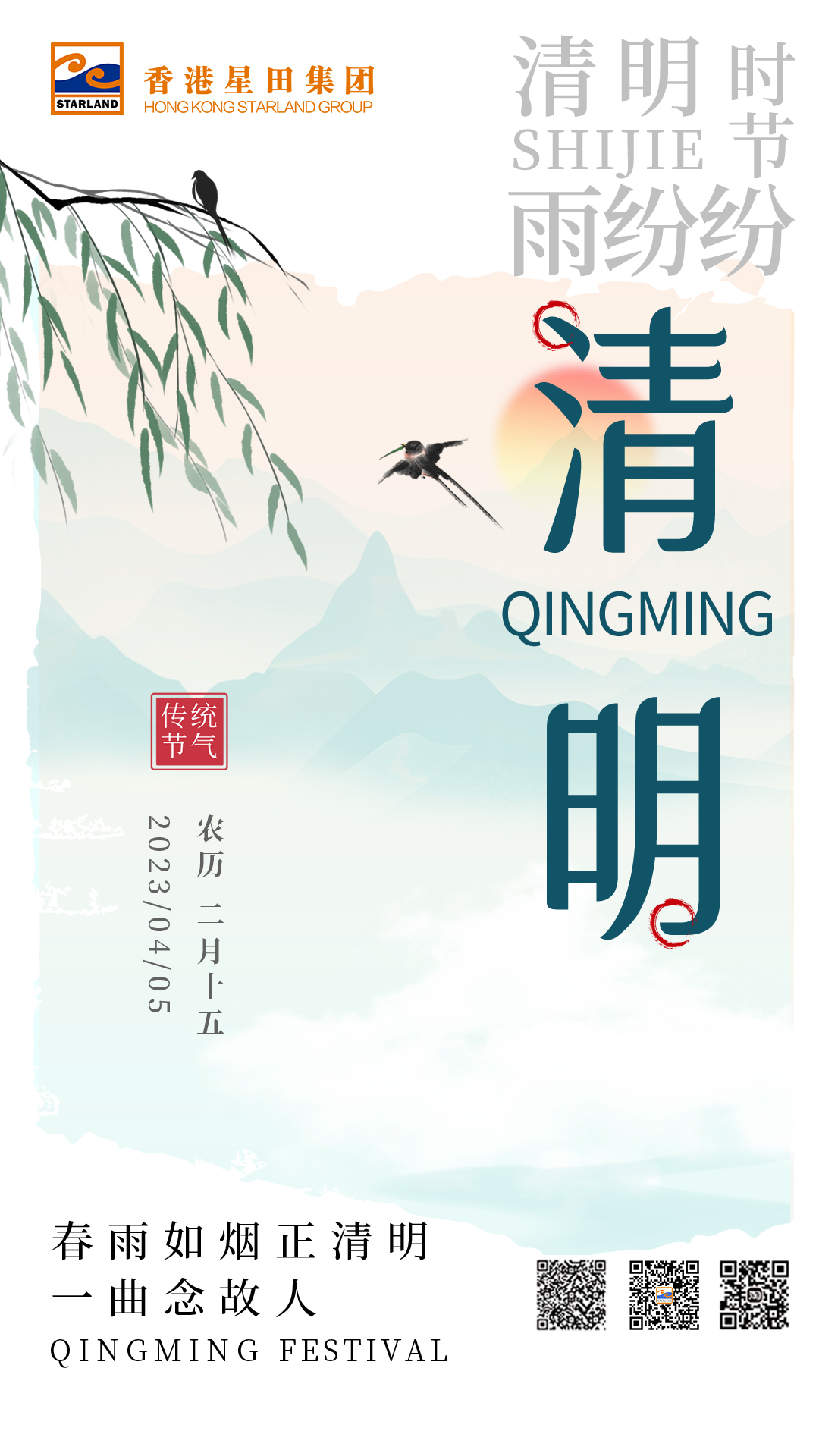 清明节又叫踏青节,在冬至后的第108天,仲春与暮春相交之时。它是中国传统节日,也是最重要的祭祀节日之一,是祭祖和扫墓的日子。